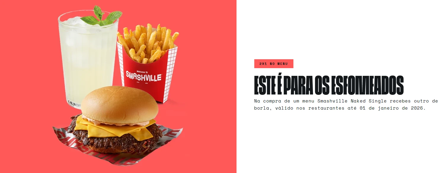 Com a MOCHE, tens 2x1 no menu Smashville Naked Single.